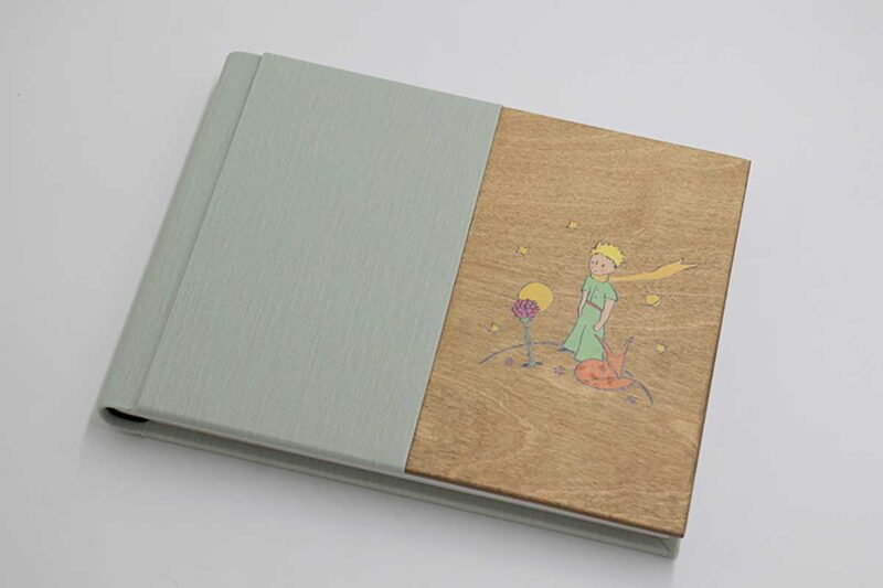 Άλμπουμ βάπτισης σε διάσταση 30×40 μισό ξύλο μισό δερματίνη.Το ξύλο σε δρυς απόχρωση με εκτύπωση uv το γραφικο της επιλογής σας.
