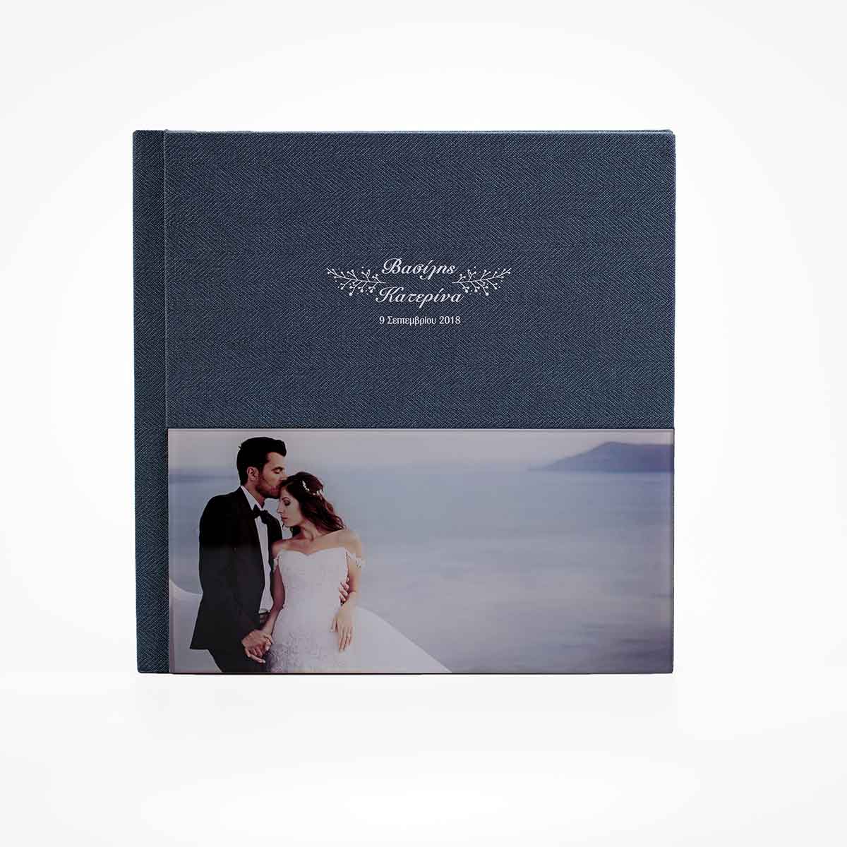 Άλμπουμ γάμου με φωτογραφία τυπωμένη σε plexiglaas και εκτύπωση uv στο πάνω μέρος.