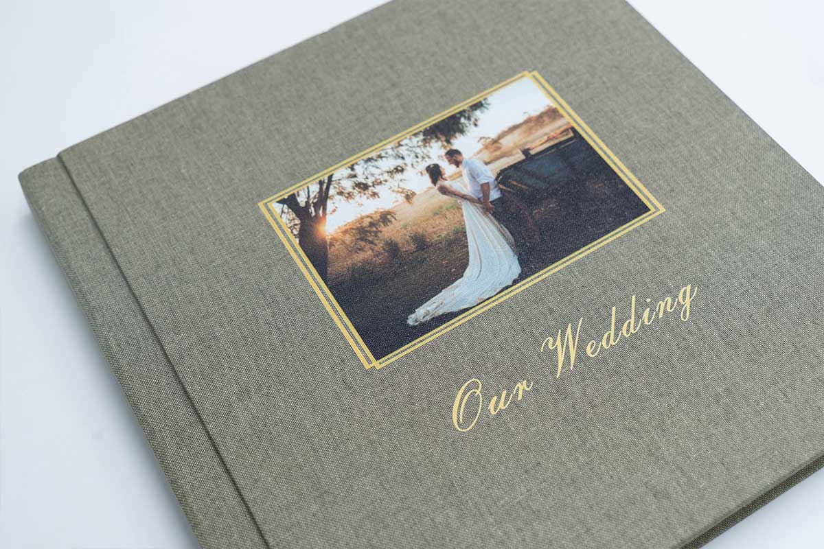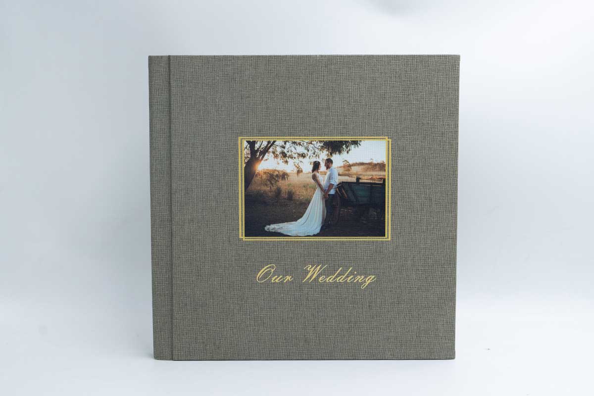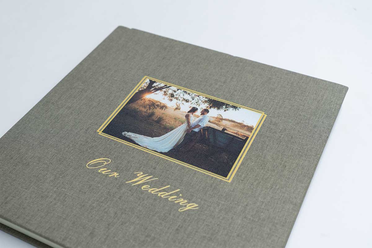 Άλμπουμ γάμου σε διάσταση 30*80 με uv print εκτυπωμένη την φωτογραφία και το γραφικό της επιλογής σας σε ειδικό αδιαβροχοποιημένο λινό ύφασμα.